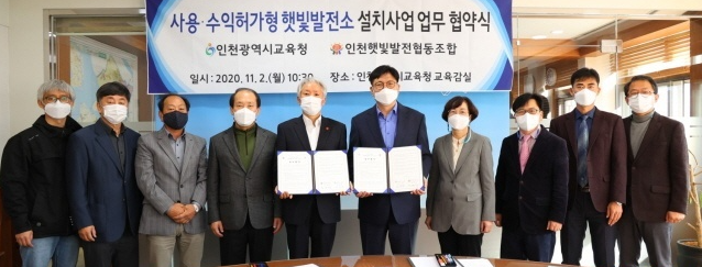 [뉴스카페]인천광역시교육청(교육감 도성훈)은 2일 인천햇빛발전협동조합과 ‘사용·수익허가형 햇빛발전소 설치사업’ 업무 협약을 체결했다고 밝혔다.