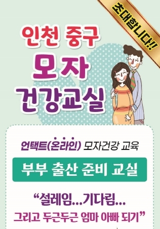 [뉴스카페]인천 중구보건소는 코로나19 장기화로 대면교육이 어려운 임산부를 대상으로 태교, 출산, 육아에 대한 고민을 함께 나누고자 무료로 온라인 실시간 비대면‘인천 중구 모자 건강교실’을 진행한다고 9일 밝혔다.
