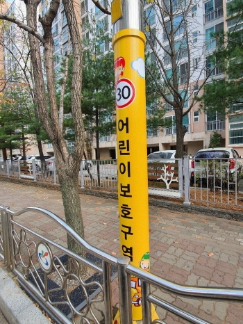 특히 사업구역 내 학교 주변으로는 밝은 노란색의 어린이보호구역 디자인의 시트지를 부착하여 어린이 교통사고 예방에 중점을 두고 사업을 진행하고 있다.