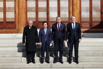 이날 예방에는 우즈베키스탄 압둘아지즈 하피조비치 카밀로프 외교장관과 비탈리 펜 주한우즈베키스탄대사, 타지키스탄 시로지딘 무흐리딘 외교장관, 카자흐스탄 무흐타르 베스케눌리 틀례우베르디 외교장관과 바키트 듀센바예프 주한카자흐스탄대사, 미랏 맘멧알리예프 주한투르크메니스탄대사가 참석했다.