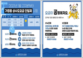 그동안 가정용 수도요금은 3개 구간으로 나뉘어져 있어 사용량이 1~20㎥인 가정은 1㎥당 470원, 21~30㎥인 가정은 21㎥초과 1㎥당 670원, 31㎥ 이상 사용한 가정은 31㎥초과 1㎥당 850원의 요금이 부과됐으나, 요금체계가 개선됨에 따라 가정용 상수도요금은 사용량에 따른 누진제 없이 요금 부과가 가능해진다.