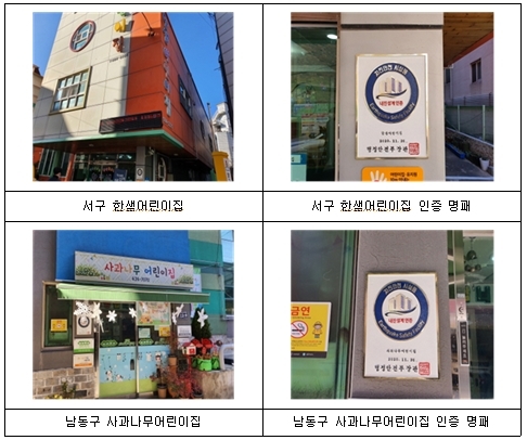 이번에 인증을 받은 어린이집은 서구 한샘어린이집과 남동구 사과나무어린이집으로, 소요비용은 전액 지원받아 인증을 획득했다.