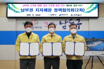 이강호 남동구청장과 고남석 연수구청장, 김정식 미추홀구청장은 지난 18일 남동구청에서 제2차 남부권 자원순환 정책협의회를 열고, 합의문에 담길 세부 내용을 조율했다.