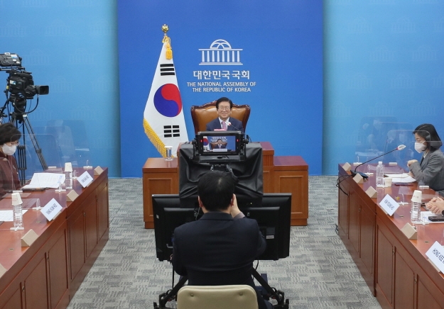 [뉴스카페]박병석 국회의장은 21일 국회 영상회의실에서 리잔수 중국 전국인민대표회의(전인대) 상무위원장과 화상회담을 갖고 “한중일 국회의장 회의를 제안한다”고 말했다.
