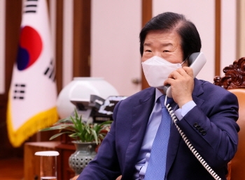 [뉴스카페]박병석 국회의장이 28일 오후 의장집무실에서 뱌체슬라프 볼로딘 러시아 하원의장과 가진 전화 통화에서 “양국에서 진행하고 있는 한-러 서비스·투자 FTA협상이 좀 더 속도를 냈으면 한다”고 말했다.