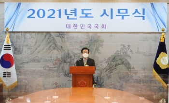 특히 이날 시무식에는 국회 현장근무자를 대표해 방호직원·청소근로자도 함께했다. 이 외에도 현진권 국회도서관장, 임익상 국회예산처장, 김만흠 국회입법조사처장, 전상수 입법차장, 조용복 사무차장 등이 참석했다.