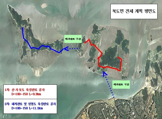 이번에 완료된 1단계 사업은 신도~시도~모도 육상 구간이며, 2단계 사업인 장봉도 육상 구간과 해저관로 구간은 2021년 3월 착공하여 2022년 9월 완료할 예정이다.