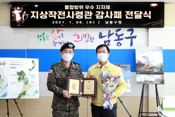 이날 감사패는 지상작전사령관을 대신해 육군 17보병사단 507여단장(대령 윤영성)이 이강호 남동구청장에게 전달했다.