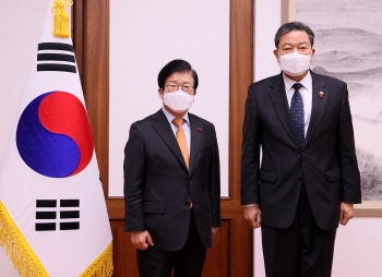 [뉴스카페]박병석 국회의장은 15일 오전 의장집무실에서 신임 황기철 국가보훈처장의 예방을 받고 “국가를 위해 희생하고 봉사하는 분들에 대해 국가가 예우하고 보답하지 않으면 국가에 충성할 사람은 없을 것”이라며 “ 항상 예우하고 보답해야 한다고 생각한다”고 말했다.