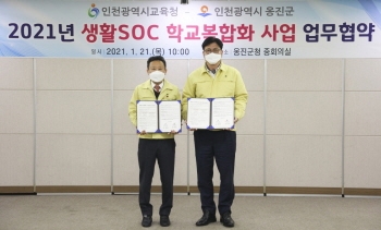 [뉴스카페]인천광역시교육청(교육감 도성훈)은 옹진군청(군수 장정민)과 21일 ‘2021년 생활SOC 학교복합화 사업’ 추진을 위한 업무 협약을 체결했다.