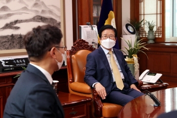 박 의장은 “국회를 찾아서 야당을 자주 만나야 오해가 없이 소통이 된다”며 “전임 장관께서 추진한 검찰개혁이 종착역에 잘 도달할 수 있도록 해주길 바란다”고 밝혔다.