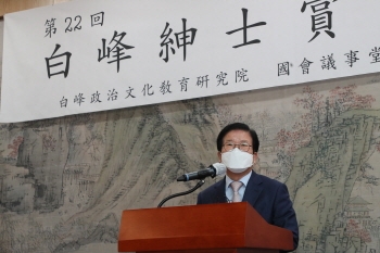 박 의장은 “백봉신사상은 정직성, 국가·사회·국민에 대한 헌신, 의회주의 실천, 바른 언어 구사 이 모든 것을 종합한 것으로 알고 있다”면서 “품격이 있는 정치인들이 품격 있는 정치를 할 수 있다는 점에서 무척 의의가 있다”고 말했다.