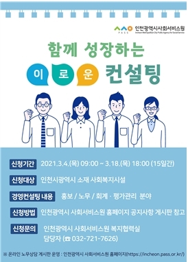 [뉴스카페]인천시사회서비스원(원장·유해숙)은 경영컨설팅과 시설 안전점검이 필요한 인천지역 민간 사회복지시설을 모집한다고 10일 밝혔다.