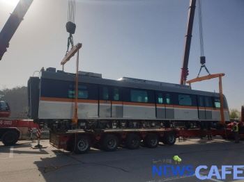 [뉴스카페]인천교통공사(사장 정희윤)는 인천도시철도 2호선 혼잡도 개선을 위해 2018년 8월 전동차 전문 제작사(우진산전)와 계약한 전동차 6대(12칸) 중 최초 편성 2칸을 30일 운연차량기지에 반입했다고 밝혔다.