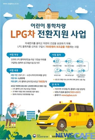 [뉴스카페]인천광역시(시장 박남춘)는 노후되어 오염물질 배출량이 많은 경유 자동차로 부터 어린이의 건강을 보호하고 미세먼지 저감에 기여하고자‘2021년도 어린이 통학차량 LPG차 전환 지원 사업’을 시행한다고 밝혔다.