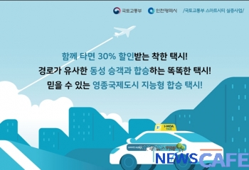 [뉴스카페]인천광역시(시장 박남춘)가 영종국제도시에 인공지능이 탑승자를 연결해 주는 지능형 합승택시 서비스‘아이모아(I-MOA) 택시’를 이달 12일부터 본격 운행한다고 밝혔다.