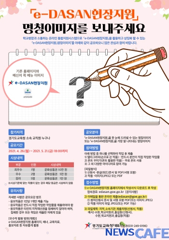 [뉴스카페]경기도교육청(교육감 이재정)은 26일부터 5월 21일까지 온라인 업무지원시스템 ‘e-DASAN현장지원’의 새로운 상징(CI)을 공모한다.
