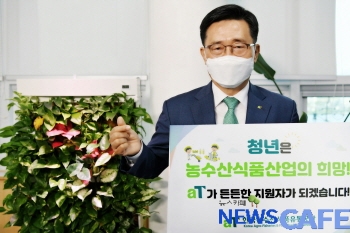 [뉴스카페]한국농수산식품유통공사(aT) 김춘진 사장은 지난 30일 ‘청년농업인 육성 확대를 위한 릴레이 응원 캠페인’에 동참했다.