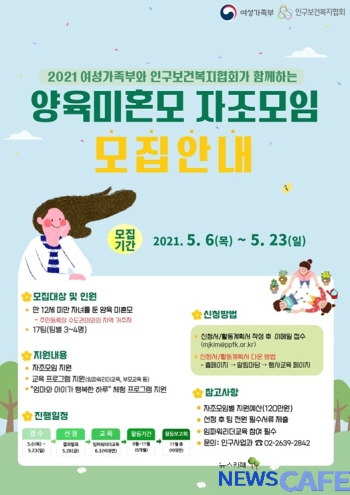 [뉴스카페]인구보건복지협회(회장 김창순)는 미혼모의 자립의지 강화와 건강한 양육환경 조성을 위해 여성가족부 '2021 가족 소통·참여 사업'의 후원을 받아 지난해에 이어 ‘양육미혼모 자조모임’을 실시한다.