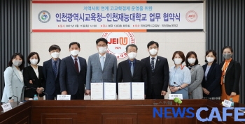 [뉴스카페]인천광역시교육청(교육감 도성훈)은 11일 지역사회 연계 고교학점제 운영을 위해 인천재능대학교와 업무 협약을 체결했다.