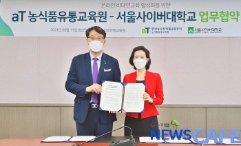 한국농수산식품유통공사(aT, 사장 김춘진) 농식품유통교육원(이하 aT교육원)은 11일 비대면 온라인교육 강화를 위해 서울사이버대학교(총장 강인)와 업무협약(MOU)을 체결했다.