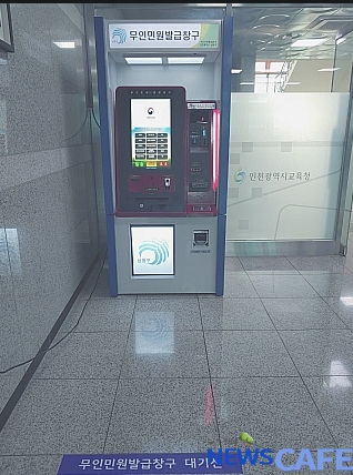 [뉴스카페]인천광역시교육청(교육감 도성훈)은 주민 불편 해소와 편리한 민원행정 서비스 제공을 위해 인천시교육청 정보센터 1층에 무인민원발급기를 설치해 14일부터 운영한다고 밝혔다.