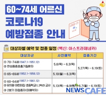 [뉴스카페]강화군(군수 유천호)이 60세부터 74세 어르신을 대상으로 다음달 3일까지 연령대별로 코로나19 예방접종 사전예약을 받는다.