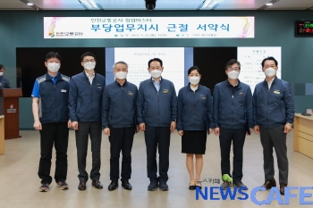 [뉴스카페]인천교통공사(사장 정희윤)는 25일 사장, 감사 등 임직원과 노동조합이 참석한 가운데 ‘노사합동 청렴경영 선포식’을 개최했다고 밝혔다.