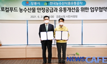 [뉴스카페]한국농수산식품유통공사(aT, 사장 김춘진)와 강릉시(시장 김한근)는 2일 강릉시청에서 로컬푸드 및 농수산물의 안정적인 공급기반 조성과 유통구조 개선을 위한 업무협약을 체결했다.