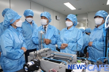 의원들은 시설 관계자로부터 마스크 생산시설 구축 등 사업진행 전반과 향후계획에 대해 보고받았으며 애로사항과 건의사항을 청취했다. 또한 주요생산 시설을 살펴보며 다양한 질의를 했다.
