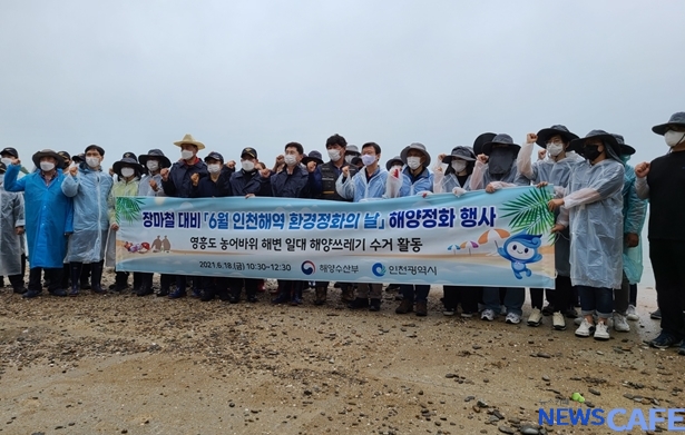 [뉴스카페]인천광역시(시장 박남춘)는 해양쓰레기 정화주간(6.14.∼20.)을 맞아 집중호우 기간 해양쓰레기 발생량 저감을 위해 6월 18일 옹진군 영흥면 농어바위 해변에서 해양수산부 및 유관기관과 함께 해양쓰레기 수거 활동을 추진했다고 밝혔다.