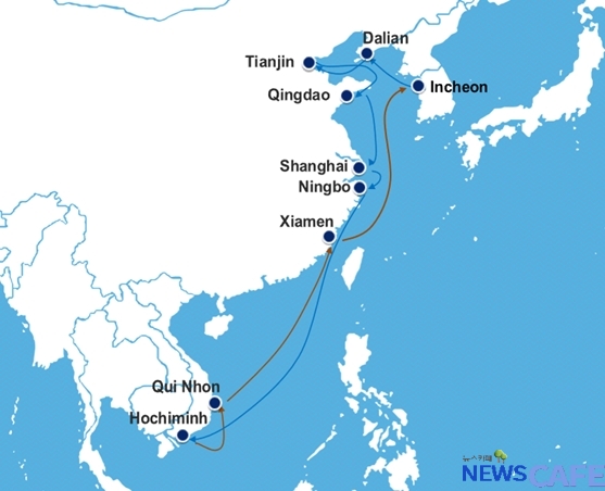 ‘CVS’ 서비스 노선은 인천-대련-천진-청도-상해-닝보-호치민-퀴논-셔먼-인천을 기항한다.