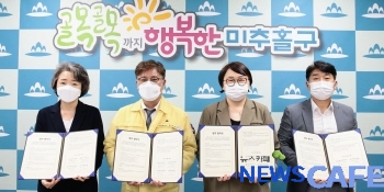 [뉴스카페]인천 미추홀구(구청장 김정식)는 28일 구청장실에서 인천시고령사회대응센터, 미추홀노인인력개발센터, 미추홀시니어클럽과 업무 협약을 체결했다.