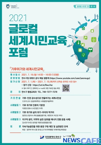 [뉴스카페] 인천 연수구(구청장 고남석)는 오는 19일 오후 2시부터 4시까지 세계시민교육 관계자와 구민을 대상으로 온라인 ‘2021 글로컬 세계시민교육 포럼’을 개최한다.