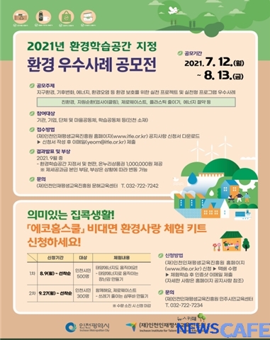[뉴스카페]인천인재평생교육진흥원(원장 김월용)은 기후 위기에 대한 세계적 관심 증대 및 인천시 환경 정책 방향에 맞춰 친환경, 자원순환 가치 확산을 위하여 ‘환경학습공간 지정을 위한 환경 우수사례 공모전’을 개최한다.