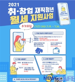 [뉴스카페]인천시(시장 박남춘)는 청년의 경제적 자립과 고용 안정을 위해 주거비의 일부를 지원하는 ‘취ㆍ창업 재직 청년 월세 지원 사업’대상자를 7월 30일까지 신청·접수 받는다고 밝혔다.