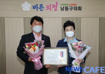 [뉴스카페] 인천 남동구의회(의장 임애숙)는 6일 의장실에서 코로나19 4차 대유행에 따른 방역수칙을 준수하며, 지방의회와 지방자치 발전에 기여한 공이 큰 김영목 남동구경영인연합회 회장에게 인천광역시군구의회의장협의회 지방의정봉사상을 수여했다.