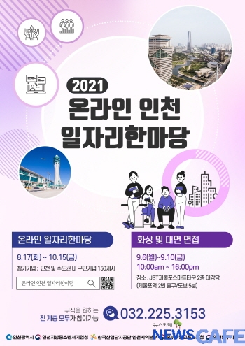 [뉴스카페]인천병무지청(청장 최구기)는 17일부터 10월 15일까지 '2021년 온라인 인천 일자리한마당'을 개최한다고 밝혔다.