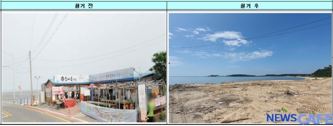 용유해변 일대는 그동안 무분별한 위반 건축물 난립으로 경관이 크게 저해되고 환경이 오염되는 등 관광 이미지가 크게 훼손됐다.