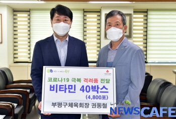 [뉴스카페]인천 부평구(구청장 차준택)는 26일 권동철 부평구 체육회장으로부터 비타민 40상자(총 4천800포)를 기탁 받았다.