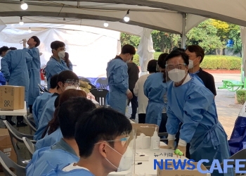[뉴스카페]이강호 남동구청장이 지난 2일 남동근린공원에 설치된 남동산단 임시선별진료소를 방문해 코로나19 진단검사 의료진과 지원인력을 격려했다.