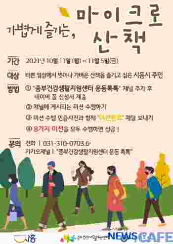 [뉴스카페]시흥시(시장 임병택)는 지역주민들이 가벼운 걷기를 통해 일상 속 작은 여유를 찾을 수 있는 ‘마이크로 산책 챌린지’를 이달 11일부터 11월 5일까지 운영한다.