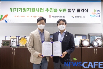 [뉴스카페]인천 서구(구청장 이재현)는 지난 8일 이랜드재단(대표이사 정재철)과 ‘위기가정 지원사업’ 협력을 위한 업무협약을 체결했다고 밝혔다.