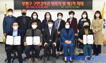 [뉴스카페]인천 부평구(구청장 차준택)는 21일 구청 상황실에서 공정하고 투명한 감사를 실시하기 위한 ‘부평구 구민감사관 위촉식’을 진행했다.