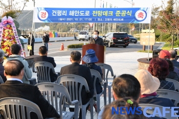 군은 21일 해안도로를 기반으로 바닷가 해안 풍광을 전망할 수 있는 ‘건평리 해안도로 전망데크’ 준공식을 가졌다.
