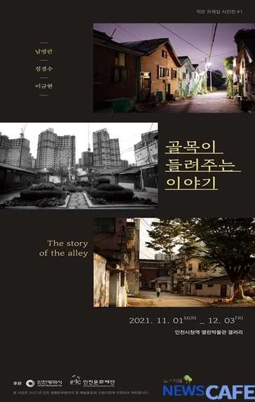 이번 전시는 인천부천사진동호회 ‘작은프레임’의 첫 사진전으로 남영란, 이규현, 정경수 3명의 작가가 참여했다. 이들은 “원도심 재개발로 원래의 모습을 잃고 사라져가는 골목 풍경에 대한 아쉬움에서 이번 전시를 기획”하게 되었다고 전했다. 우리가 무심코 지나치던 골목에서 발견한 인천의 다양한 이야기를 사진으로 담아냈다.
