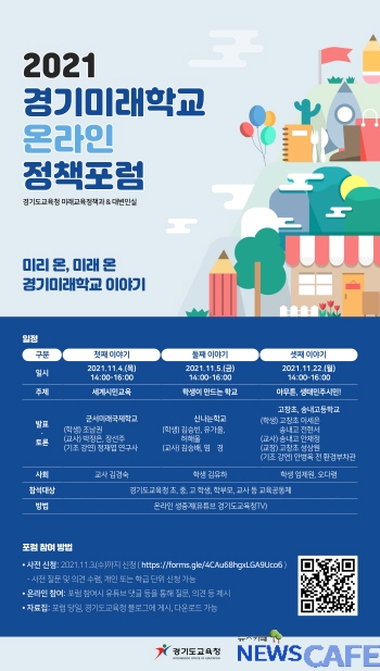 [뉴스카페]경기도교육청(교육감 이재정)은 오는 4일 ‘2021 경기미래학교 정책 포럼’을 온라인으로 개최한다.