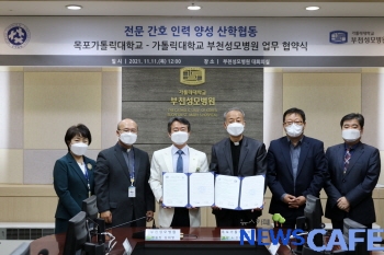 [뉴스카페]가톨릭대학교 부천성모병원(병원장 김희열)과 목포가톨릭대학(총장 김용운)이 지난 11일 부천성모병원 대회의실에서 산학협동 업무협약을 체결했다.