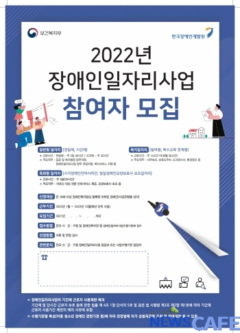 [뉴스카페]인천 동구(구청장 허인환)가 관내 장애인들에게 일자리 제공을 통한 사회참여 확대와 장애인 복지 향상을 위해 15일부터 오는 12월 3일까지 ‘2022년 장애인일자리사업’에 함께 할 참여희망자를 모집한다.