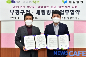 [뉴스카페]인천 부평구(구청장 차준택)는 지난 15일 구청 영상회의실에서 의료법인 안은의료재단 세림병원과 코로나19 재택치료자의 안정적인 의료서비스 구축을 위한 업무협약을 체결했다.